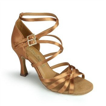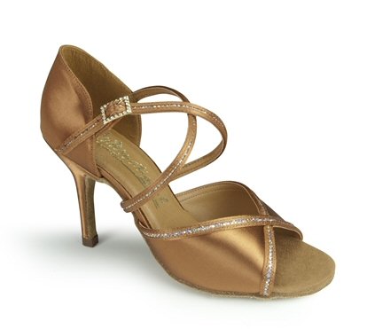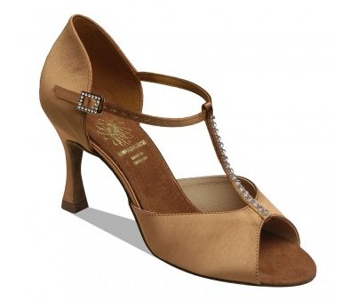 Supadance 1544 Dark Tan satin with Swarovski stones, 2.5" flare heel, size 3.5 - Now only £109.00 excl.VAT |