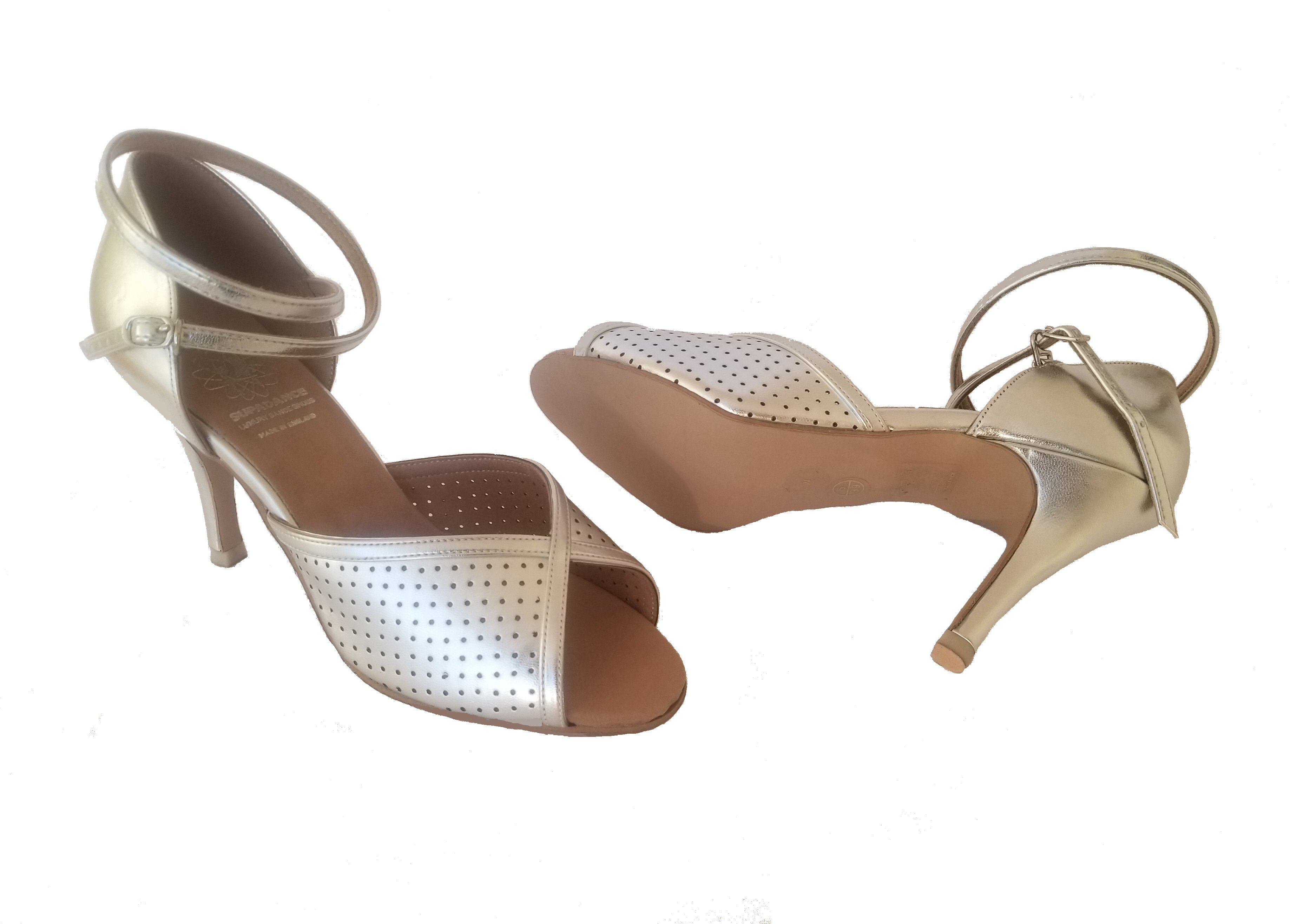 Volver 137 Marianne (for Argentine Tango) Silver Brill, Heel 70S 70mm (2.75" at the back) (Volver heels explained) SUEDE soles, size 3 (Volver size 35 European 36) - Now only £59.00 excl.VAT | | |