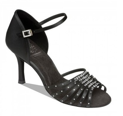 Style 1541 Black satin Price £125.00 excl.VAT Multi strap and Mesh sandal with Swarovski crystals. Square Diamond Hook Buckle. 2.5" flare heel. |