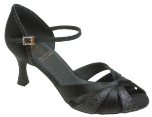 Style 1535 Satin/Glitter Price £99.00 excl.VAT Diamante buckle. Made with 2.5" flare heels, but 2" flare heels possible as a special order. |