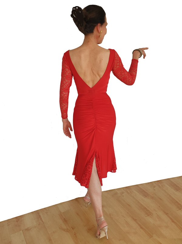 Argentine Tango dress with lace back and sleeves