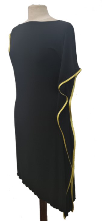 Stretchy open back dress, we recommend our criss-cross bra to use with this dress. Soft, body friendly stretch crepe and see-through stretch mesh. The fabric is very easy care: machine washable, dries quickly and does not require ironing. Model height is 5ft 8in and her dress length is in shortest place. Other lengths available. Available in UK sizes from 6 to 18. It can also be made in Custom size. |