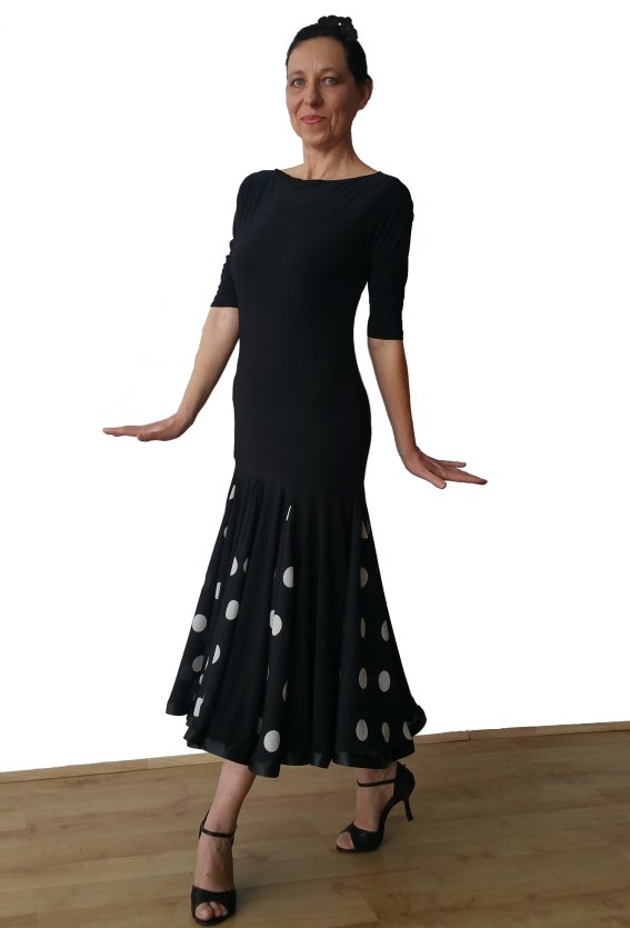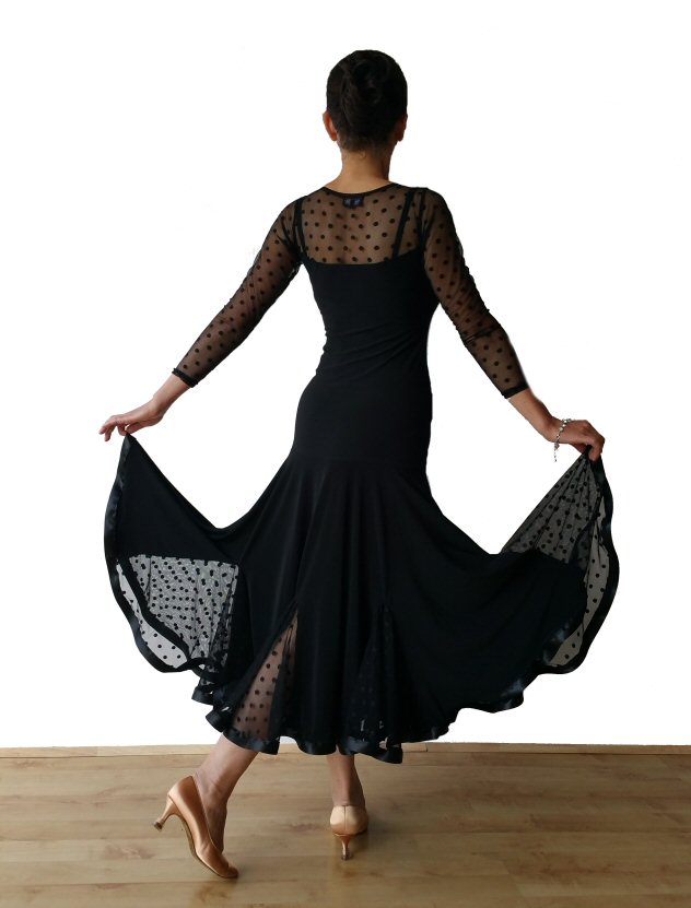 Black Ballroom dress with polka dots net godets