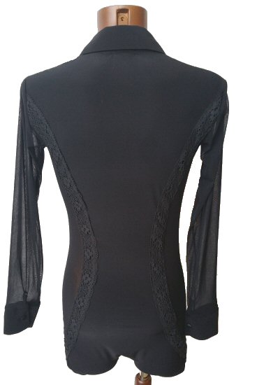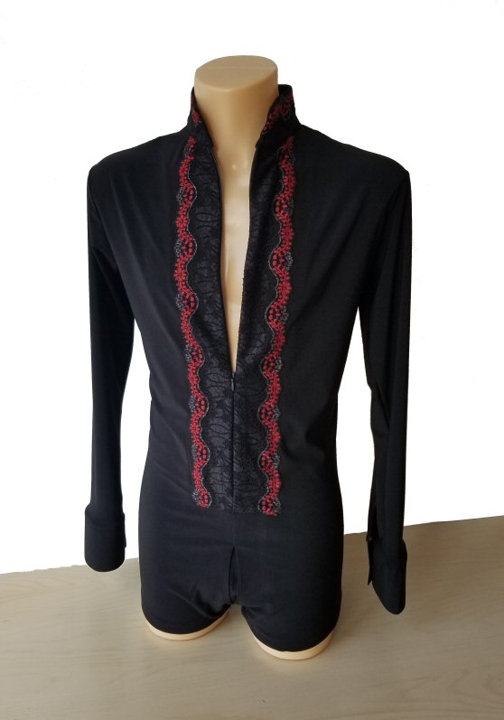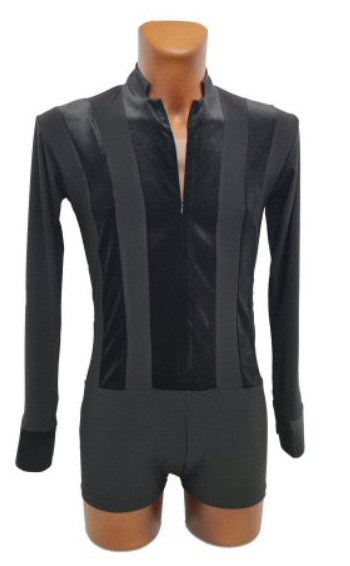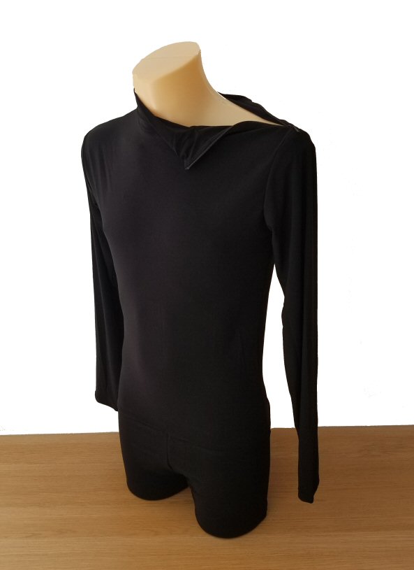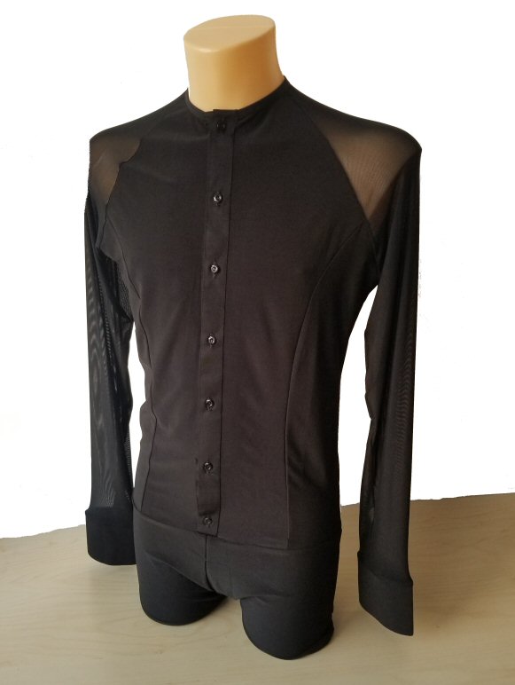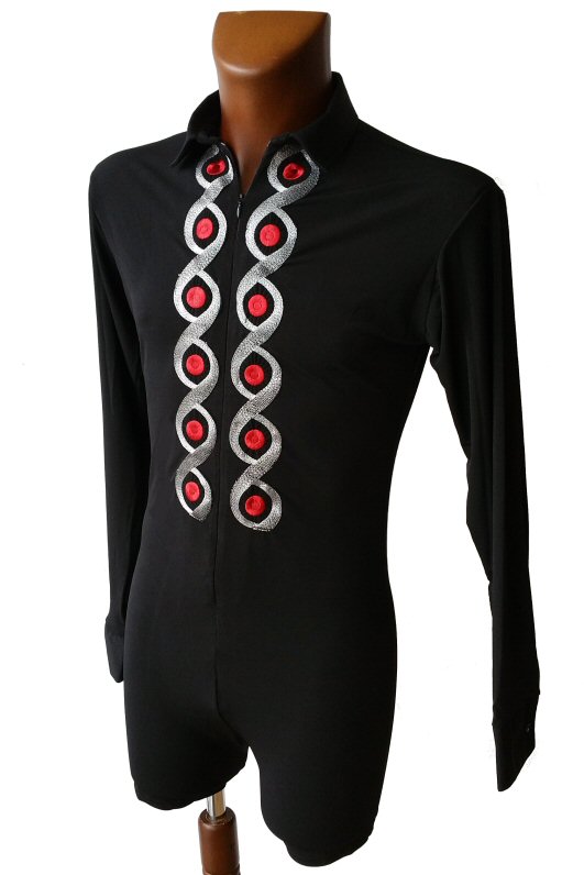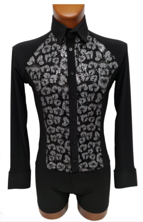Black Snake effect Raglan cut, stretchy Latin shirt on shorts. Single cuff with button. Black. |