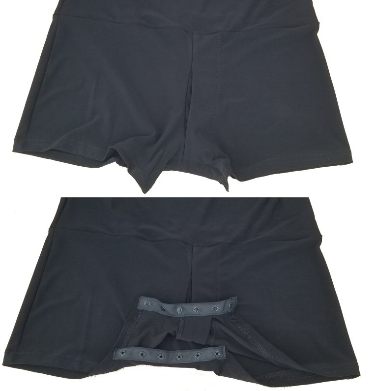 Body shirt built on shorts with zip and unique black/silver motif around the front line. Machine washable. |