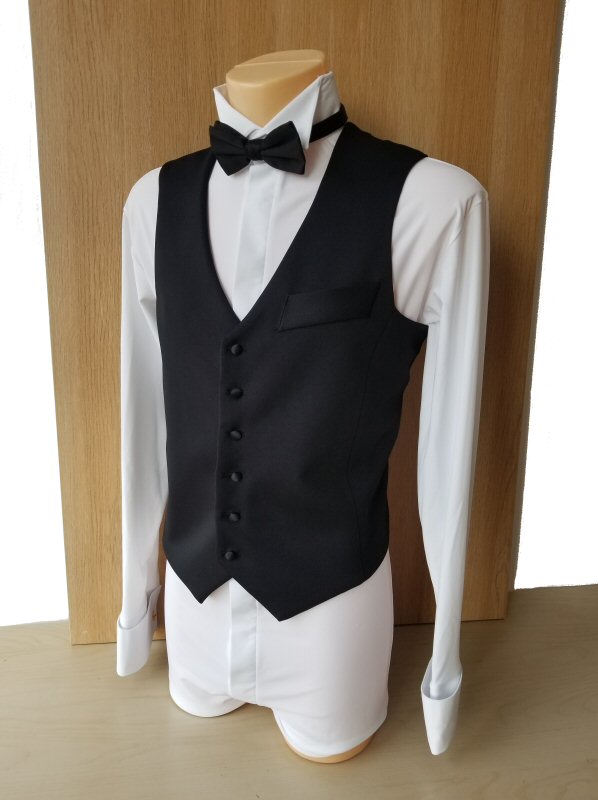 Once you start wearing the Heavenly stretchy waistcoat for your Ballroom practice you will not believe how you could live without it before. It gives you beautiful body lines and stretches in all directions without restricting your movements. The waistcoat is shown with E-MS170 shirt and Bow tie (not included). This waistcoat is made from the same fabric and perfectly matches our E-MTR142 Heavenly stretchy Practice trousers The fabric is totally crease resistant and easy care: Machine washable, Dries quickly and does not require ironing. |