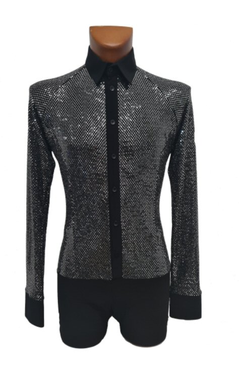 Raglan style sleeve shirt built on shorts, so it will never pull out of your trousers. Single cuff with button. Silver sparkle front and back. The collar and sleeves can be made in any of the colours shown on the sampler ( usually black)Delivery times: UK: 3 days | Rest of the world: 1-2 weeks