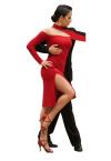 Stretch Lace Long V-neck Latin competition Shirt with satin trim