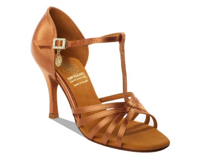 Supadance 1544 Dark Tan satin with Swarovski stones, 2.5" flare heel, size 3.5 - Now only £109.00 excl.VAT |