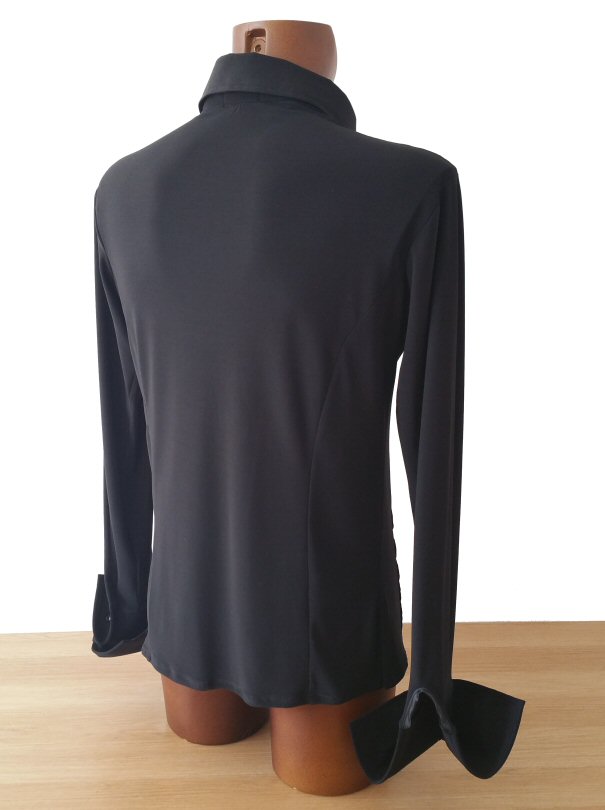 All Sparkle Raglan cut, stretch shirt. Single cuff with button. Black. |