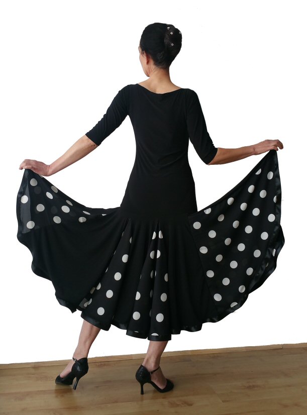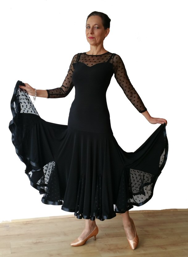 Black Ballroom dress with polka dots net godets