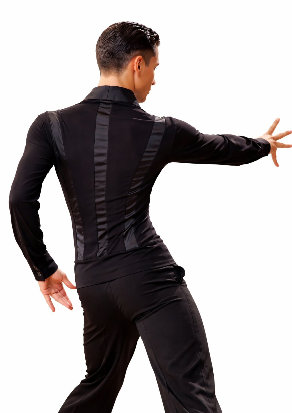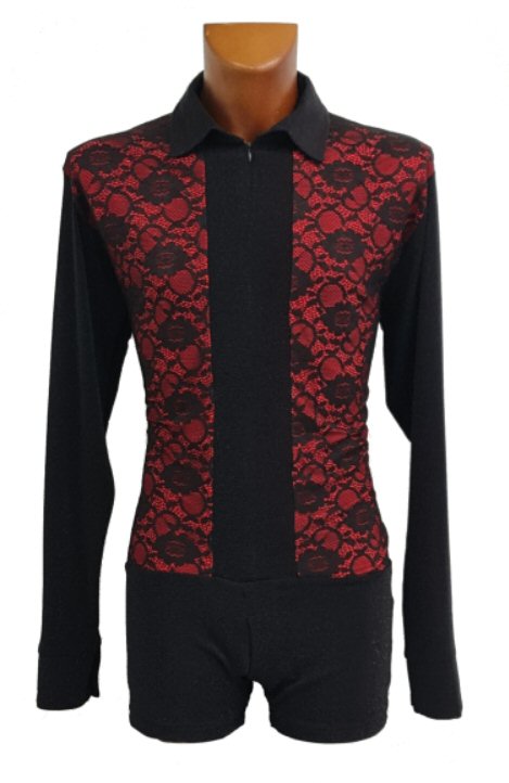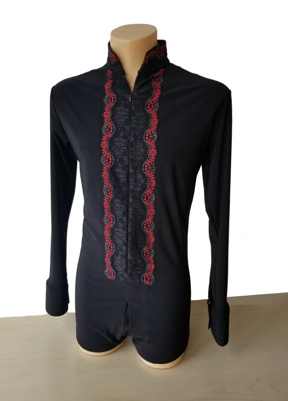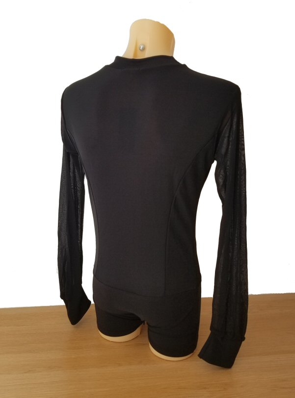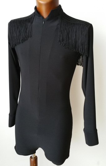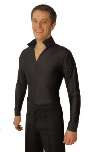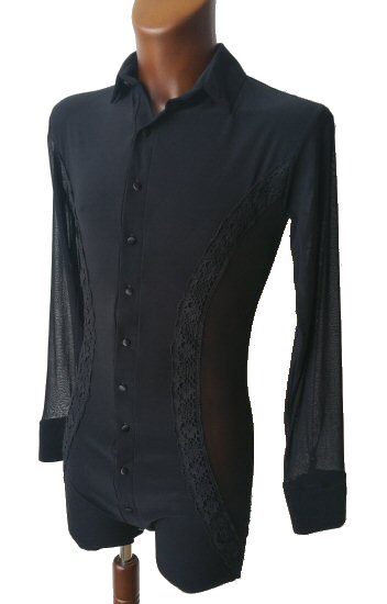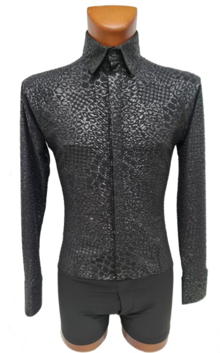 Black Snake effect Raglan cut, stretchy Latin shirt on shorts. Single cuff with button. Black. |