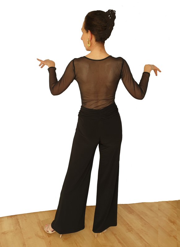Sheer mesh, completely see-through, stretchy top with long sleeve.